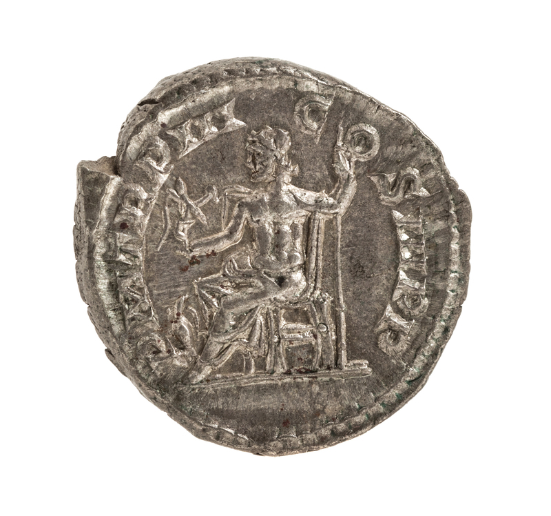 Featuring crowned Antoninianus on obverse, seated Jupiter on reverse.