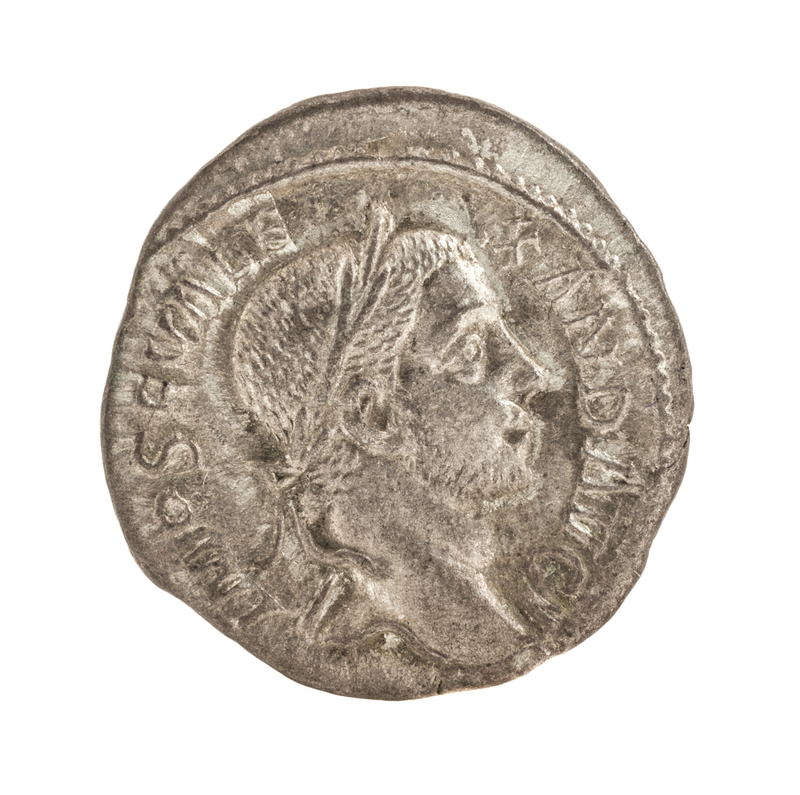 Featuring Emperor Severus Alexander crowned in laurels on obverse, standing goddess on reverse.