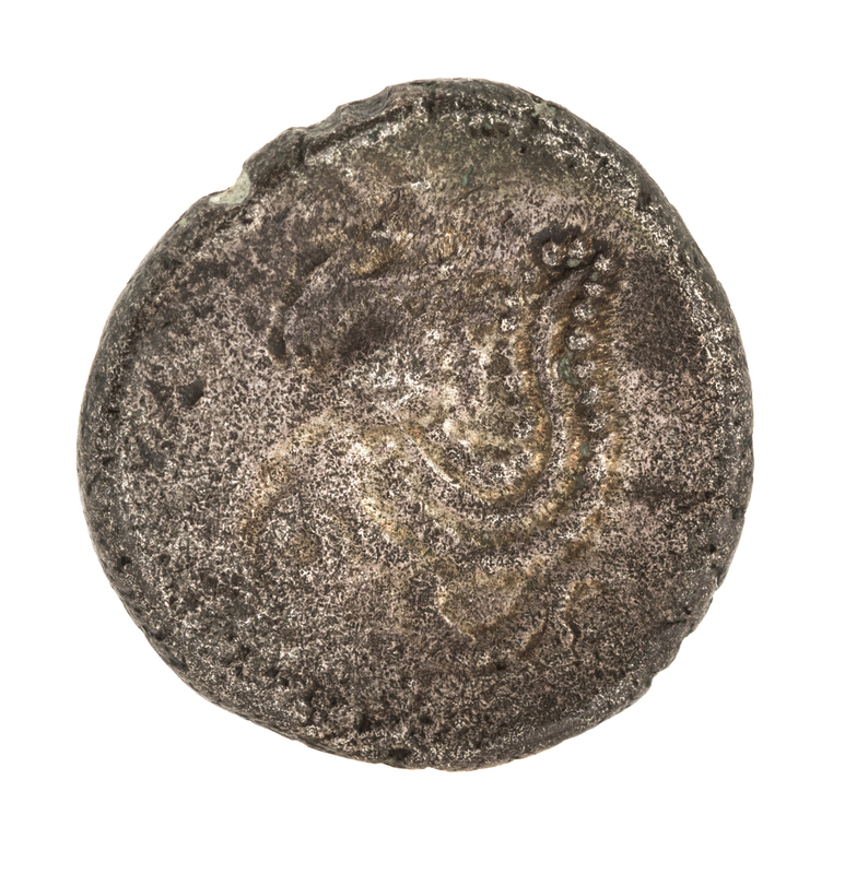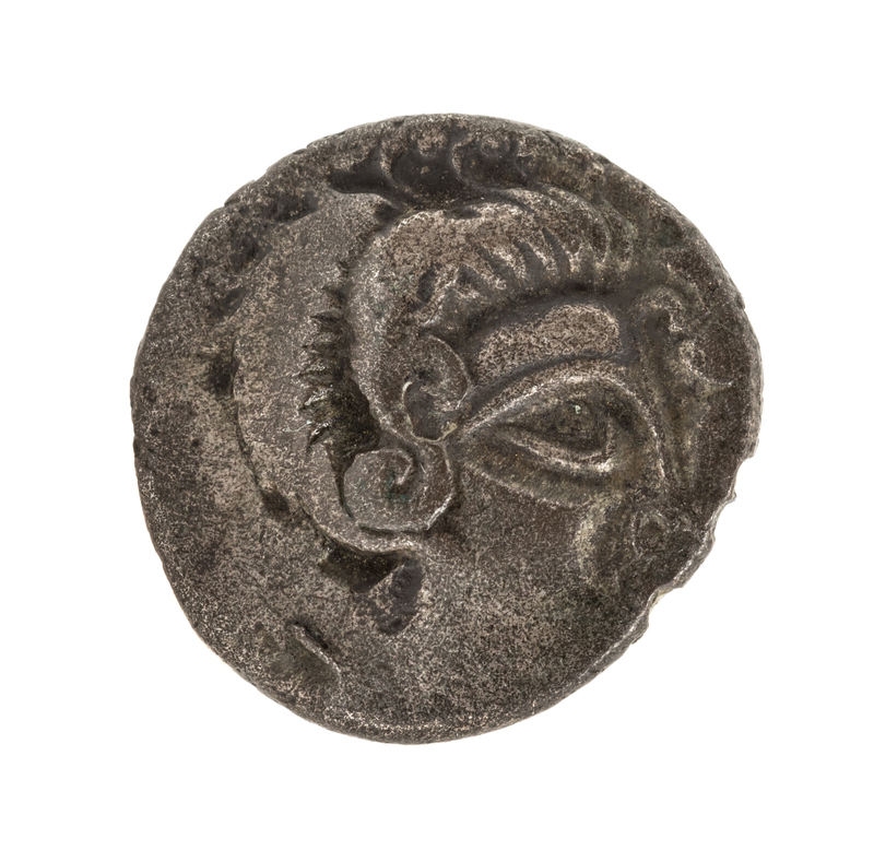 Featuring a profile on the obverse, stylized patter on reverse.