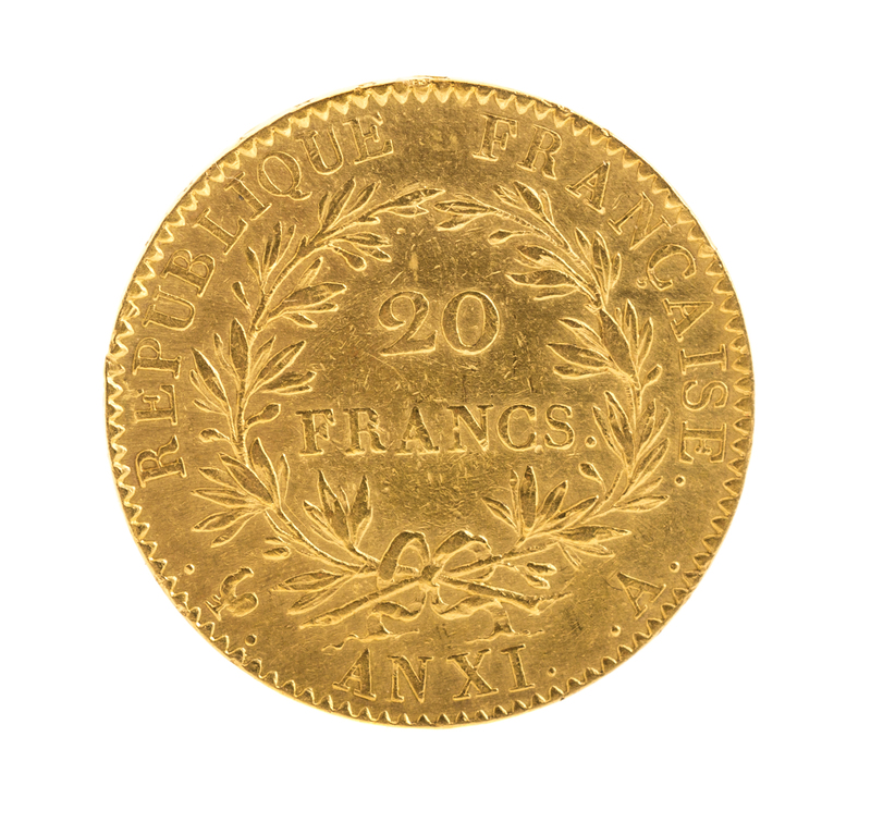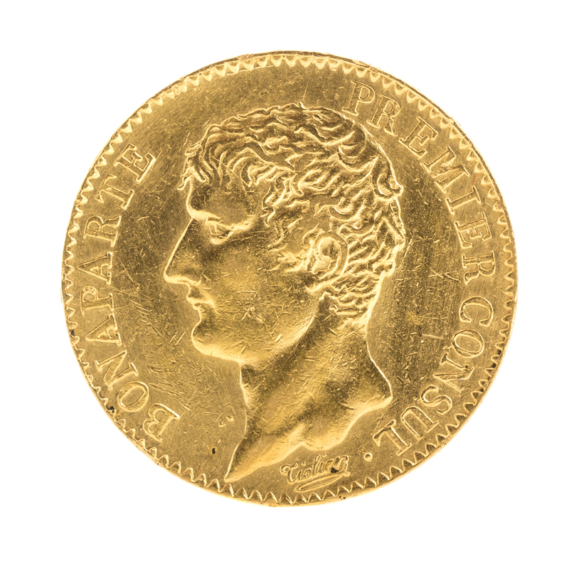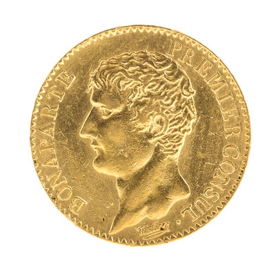 Featuring Napoleon as 'Premiere Consul' on obverse, laurel and denomination on reverse.