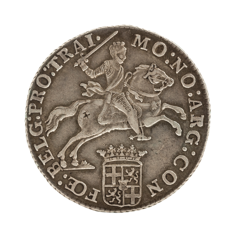 Featuring a mounted horseman on obverse, coat-of-arms on reverse.
