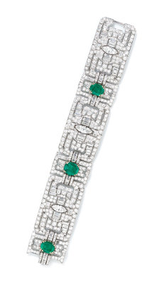 An Art Deco Platinum, Gold, Diamond and Emerald Bracelet,