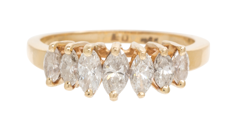 containing seven marquise cut diamonds weighing approximately 0.78 carat total.Stamp: 14K ED.