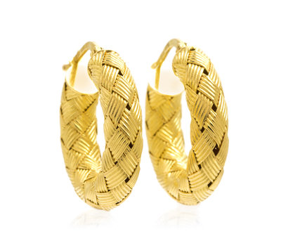 in a basket weave design.Stamp: 18KT ITALY.