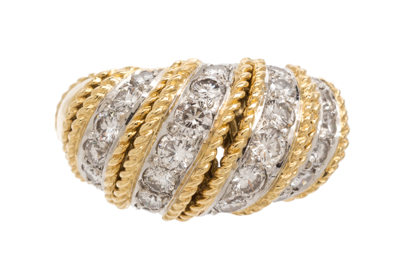 with rope motif accents, containing 26 round brilliant cut diamonds set in white gold and weighing approximately 1.60 carats total. Stamp: 18K.