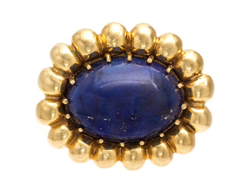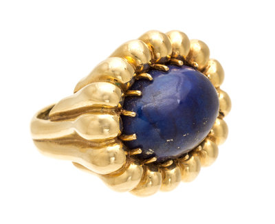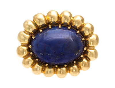 A Vintage Yellow Gold and Lapis Lazuli Bombe Ring,