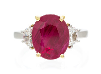 A Platinum, Yellow Gold, Ruby and Diamond Ring,