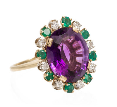 A Yellow Gold, Amethyst, Diamond and Multi Gem Ring,