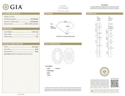 measuring approximately 9.67 x 7.20 x 4.34 mm.Accompanied by a Gemological Institute of America diamond grading certificate number 5172354400, dated October 20, 2015, Color: H, Clarity: VS1, Polish: Very Good, Symmetry: Very Good, Fluorescence: None.