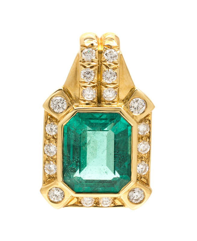 A Yellow Gold, Emerald and Diamond Pendant,