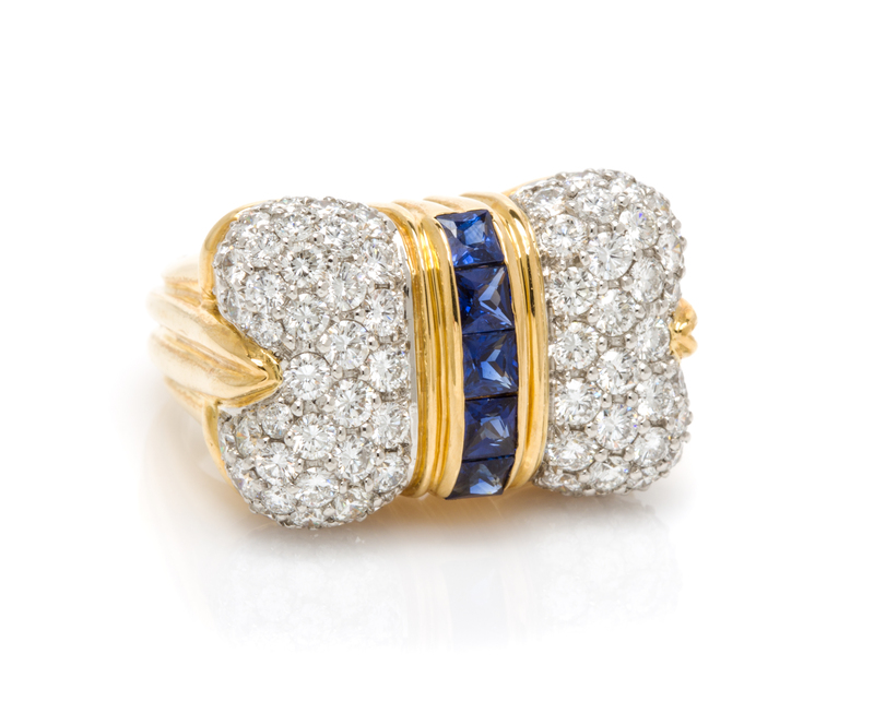 An 18 Karat Yellow Gold, Platinum, Sapphire and Diamond Ring, Chaavae,