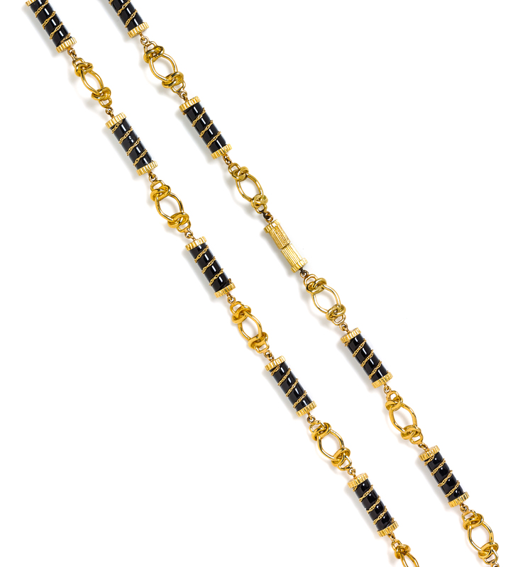 A Yellow Gold and Onyx Longchain Necklace,