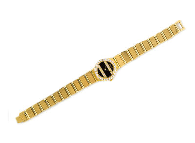 An 18 Karat Yellow Gold, Diamond and Onyx Wristwatch, Piaget,