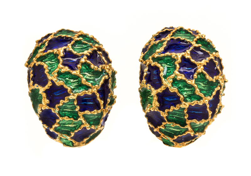 A Pair of 18 Karat Yellow Gold and Polychrome Enamel Earclips,