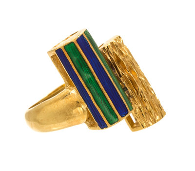 An 18 Karat Yellow Gold and Polychrome Enamel Ring, Italian,