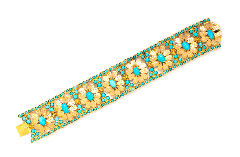 An 18 Karat Yellow Gold and Turquoise Bracelet,