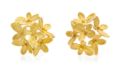 A Pair of 18 Karat Yellow Gold Hydrangea Cluster Earrings, John Iversen,