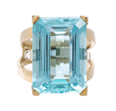 A Yellow Gold, Platinum, Aquamarine and Diamond Ring,