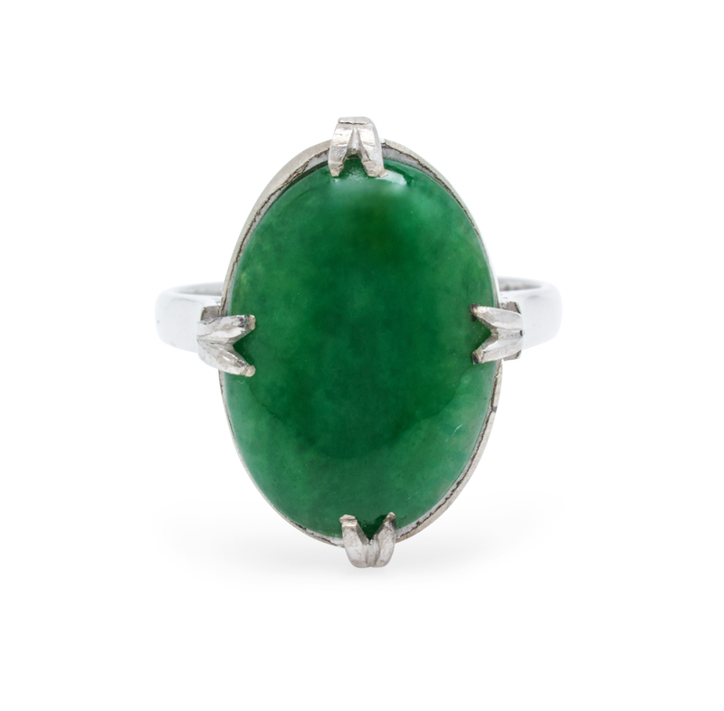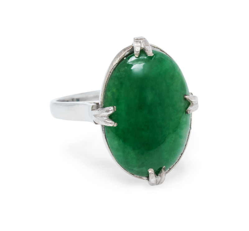 A White Gold and Jadeite Jade Ring,