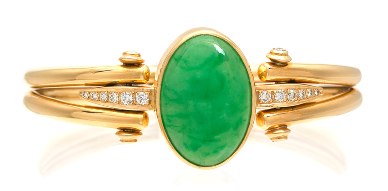 A Yellow Gold, Jadeite and Diamond Bracelet,