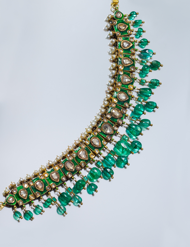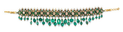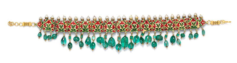 A Yellow Gold, Emerald, Diamond, Pearl and Polychrome Enamel Collar Necklace, Deccan,