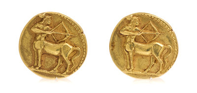 A Pair of 18 Karat Yellow Gold Sagittarius Cufflinks, Van Cleef & Arpels,