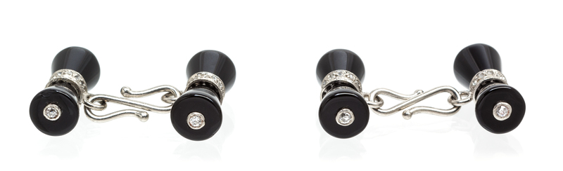 A Pair of Platinum, Onyx and Diamond Cufflinks, French,
