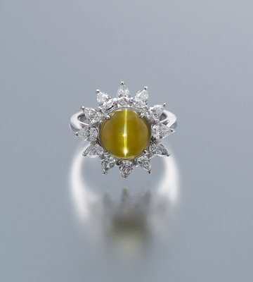 A Platinum, 18 Karat White Gold, Cat's Eye Chryosberyl and Diamond Ring,