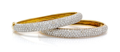 A Pair of 18 Karat Yellow Gold and Diamond Bangle Bracelets,