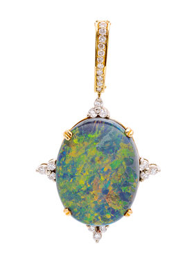 An 18 Karat Yellow Gold, Grey Opal and Diamond Pendant,