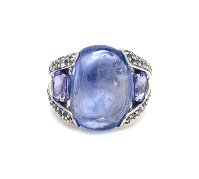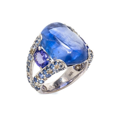 An 18 Karat White Gold, Sapphire, Tanzanite and Diamond Ring,