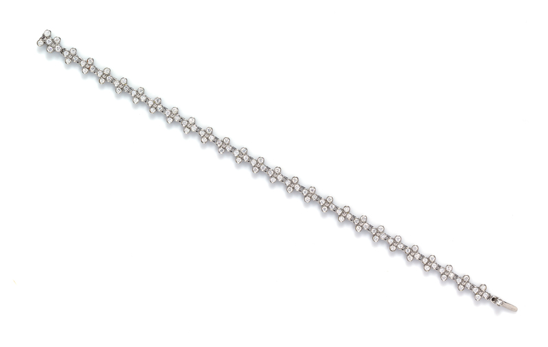 consisting of quatrefoil links containing 108 round brilliant cut diamonds weighing approximately 1.62 carats total.Stamp: TIFFANY&CO. PT950.