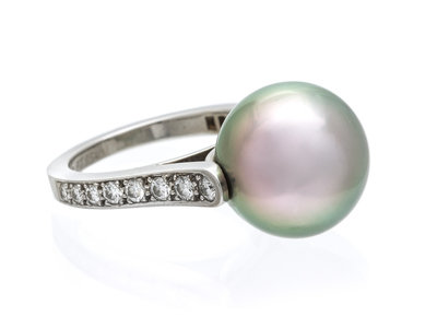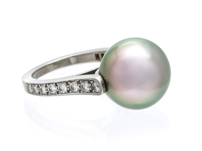 A Platinum, Cultured Tahitian Pearl and Diamond Ring, Cartier,