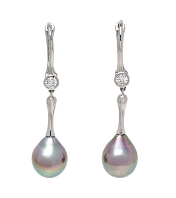 A Pair of Platinum, Cultured Tahitian Pearl and Diamond Pendant Earrings, Elsa Peretti for Tiffany & Co.,