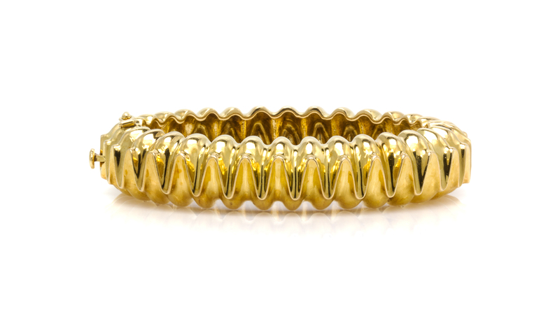 An 18 Karat Yellow Gold Hinged Bangle Bracelet, Tiffany & Co., Circa 1973,