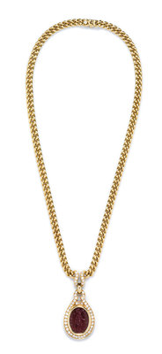 An 18 Karat Yellow Gold, Ancient Intaglio and Diamond Necklace, Bulgari,