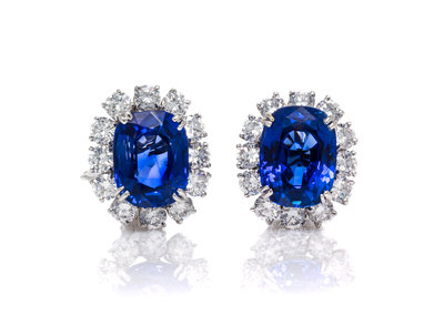 An Important Pair of Platinum, Burmese Sapphire, and Diamond Earclips, M. Gerard,