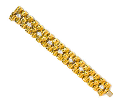 An 18 Karat Yellow Gold, Platinum and Diamond Bracelet, Chaavae,