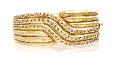 A 14 Karat Yellow Gold and Diamond Bracelet,
