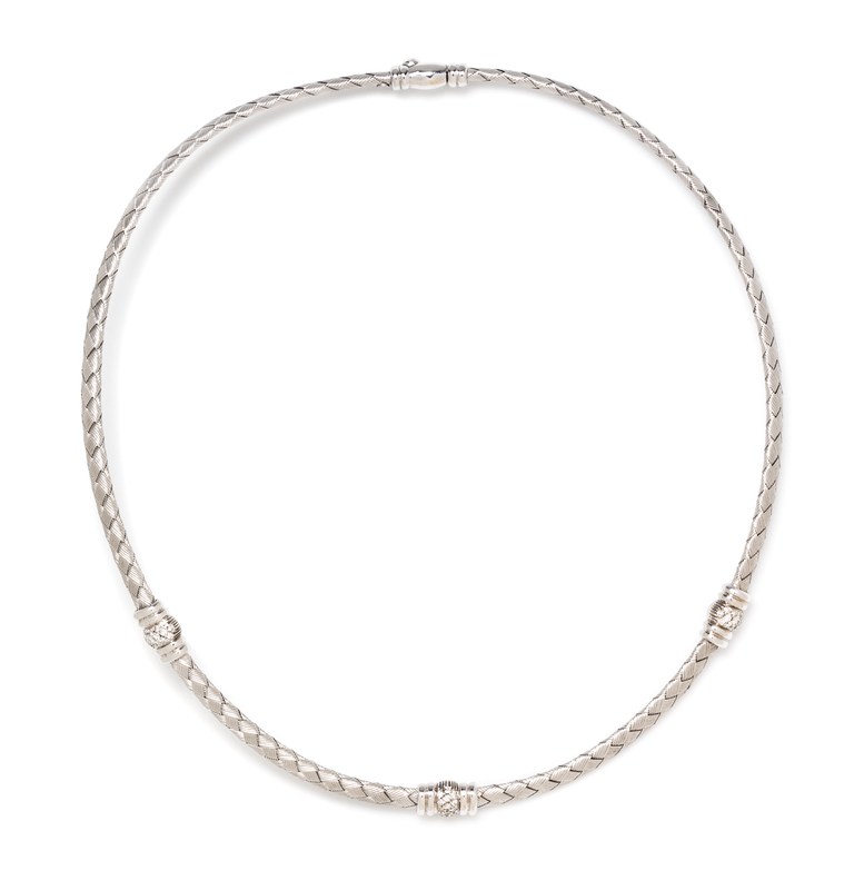 An 18 Karat White Gold and Diamond Woven Necklace, Roberto Coin,