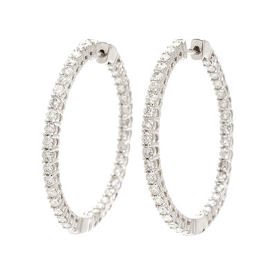 A Pair Of 14 Karat White Gold and Diamond Hoop Earrings,