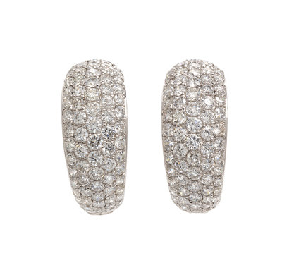 in a huggie style, containing 144 round brilliant cut diamonds weighing approximately 2.98 carats total.Stamp: 18K 750 VIVID.