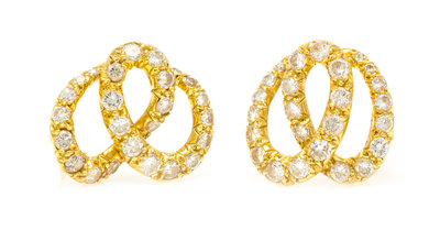 A Pair of 18 Karat Yellow Gold and Diamond Earclips, Jose Hess,