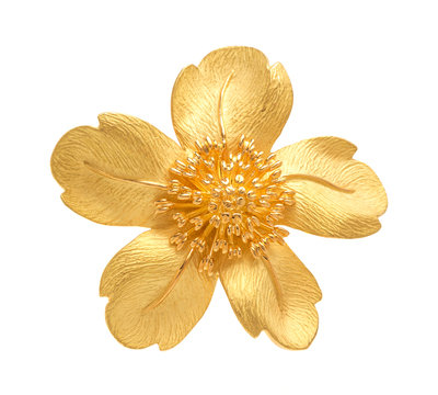 in a realistic design consisting of a highly polished wirework central cluster with five radiating satin finish textured petals.Stamp: TIFFANY&CO. 750.Accompanied by a box signed Tiffany & Co.