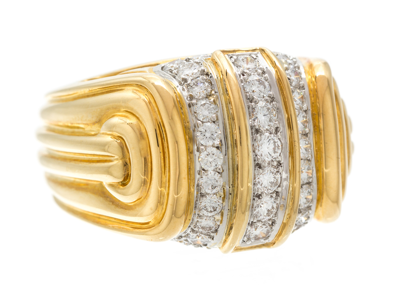 An 18 Karat Yellow Gold, Platinum and Diamond Ring, Chaavae,