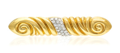 An 18 Karat Yellow Gold, Platinum and Diamond Bar Brooch, Chaavae,