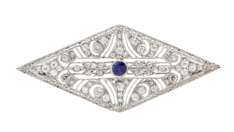 An Art Deco, Platinum, Diamond and Synthetic Sapphire Brooch,