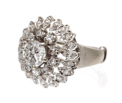 A 14 Karat White Gold and Diamond Ring,