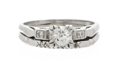 containing one old European cut diamond weighing approximately 0.38 carat and seven single cut diamonds weighing approximately 0.04 carat total. Stamp: 10% Irid Plat.