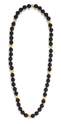 A Yellow Gold and Onyx Bead Necklace,